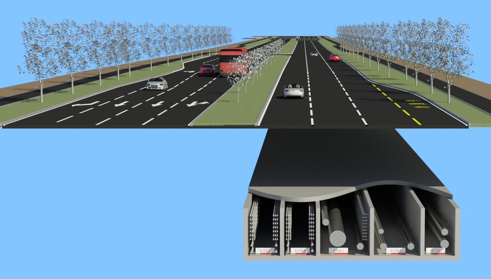 本管廊工程斷面最寬達(dá)到16.7米。其中涉及中壓、次高壓燃?xì)?、通信、再生水、給水、電力電纜等多種類(lèi)管線。