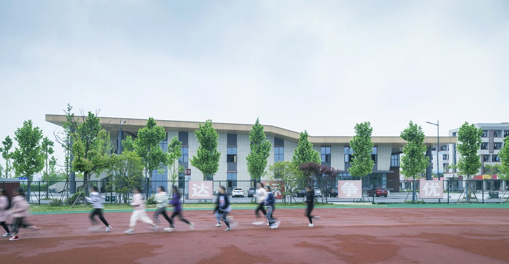 空間規(guī)劃上,打造以場(chǎng)地水系的改造為基礎(chǔ)、貫穿場(chǎng)地東西的創(chuàng)新軸,與主入口和湖面自然串聯(lián)的南北軸線傳承軸。建筑設(shè)計(jì)突破傳統(tǒng)教學(xué)樓與地面的簡(jiǎn)單垂直空間關(guān)系,利用柱廊、下沉、屋頂平臺(tái)等手法,讓立體的校園空間具有了流動(dòng)性和交流性,最大化豐富了學(xué)生的交流活動(dòng)空間。