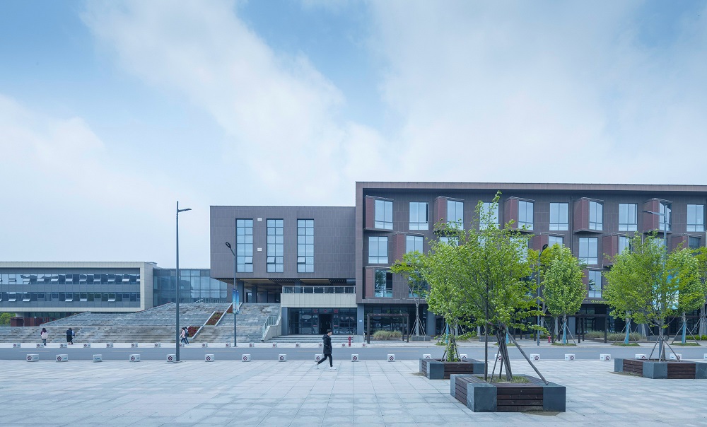 建筑設(shè)計(jì)秉承傳承與創(chuàng)新的核心理念。研究高等教育起源校園規(guī)劃手法與東西方校園開放空間策略,奠定校園核心區(qū)域教學(xué)區(qū)、實(shí)訓(xùn)區(qū)基調(diào)。教學(xué)區(qū)嚴(yán)謹(jǐn)莊重,打造軸線分明的共享空間,視為傳承;實(shí)訓(xùn)區(qū)流動(dòng)拓展,打造平等、自由、交流、學(xué)習(xí)的氛圍,視為創(chuàng)新。結(jié)合江蘇泰州當(dāng)?shù)亟ㄖ伾c現(xiàn)代校園色彩體系,體系校園的文化與嚴(yán)謹(jǐn)。
