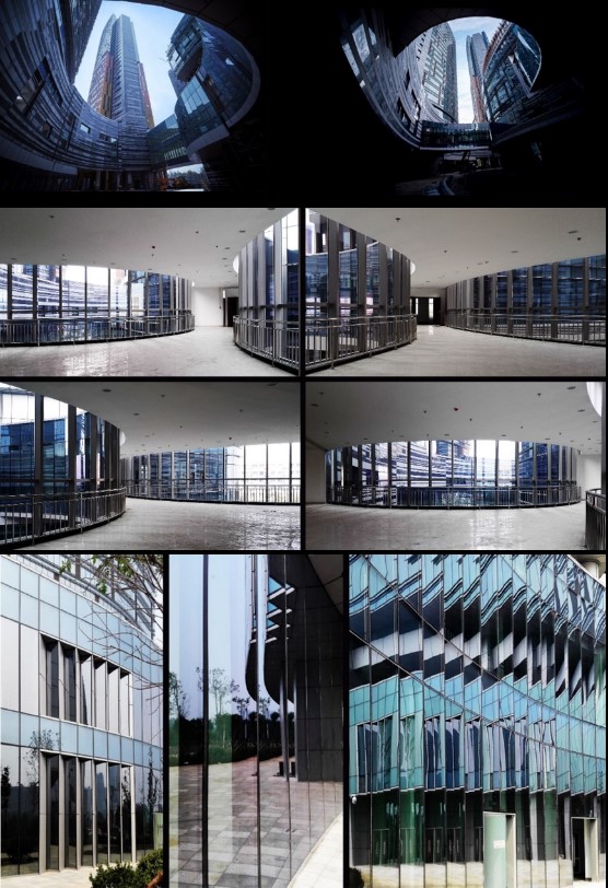 建筑空間設(shè)計(jì)以“自由流動(dòng)”構(gòu)筑了步行街、庭院及室內(nèi)空間體驗(yàn)的基本特征,連續(xù)塑造了引導(dǎo)漫步徐行、激發(fā)交流互動(dòng)的事件場(chǎng)所,不斷暗示著“伴水而生”的獨(dú)特環(huán)境感知。而建筑立面設(shè)計(jì)以玻璃這一常規(guī)材料的非常規(guī)組合應(yīng)用,探討了“環(huán)境影像”積極介入并與實(shí)體環(huán)境互動(dòng)對(duì)話的可能性。反射所形成的“虛線化的環(huán)境影像”被重新植入到連續(xù)的物質(zhì)環(huán)境之中,以其超現(xiàn)實(shí)的陌生感激發(fā)了人們對(duì)習(xí)以為常、視而不見的自然環(huán)境的重新關(guān)注與感知。